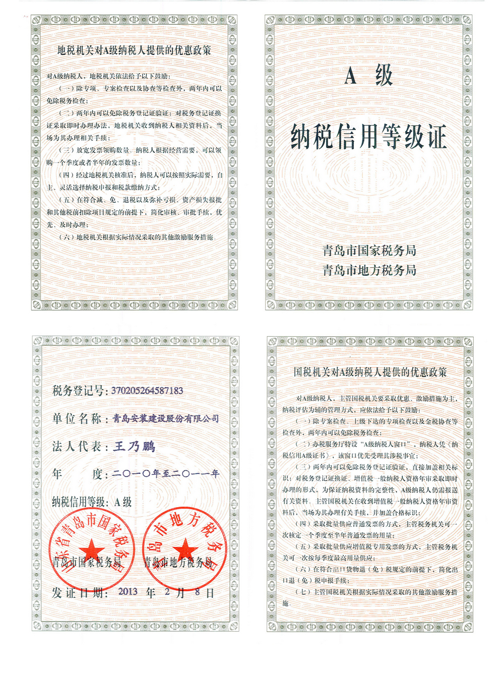 納稅信用A級證明