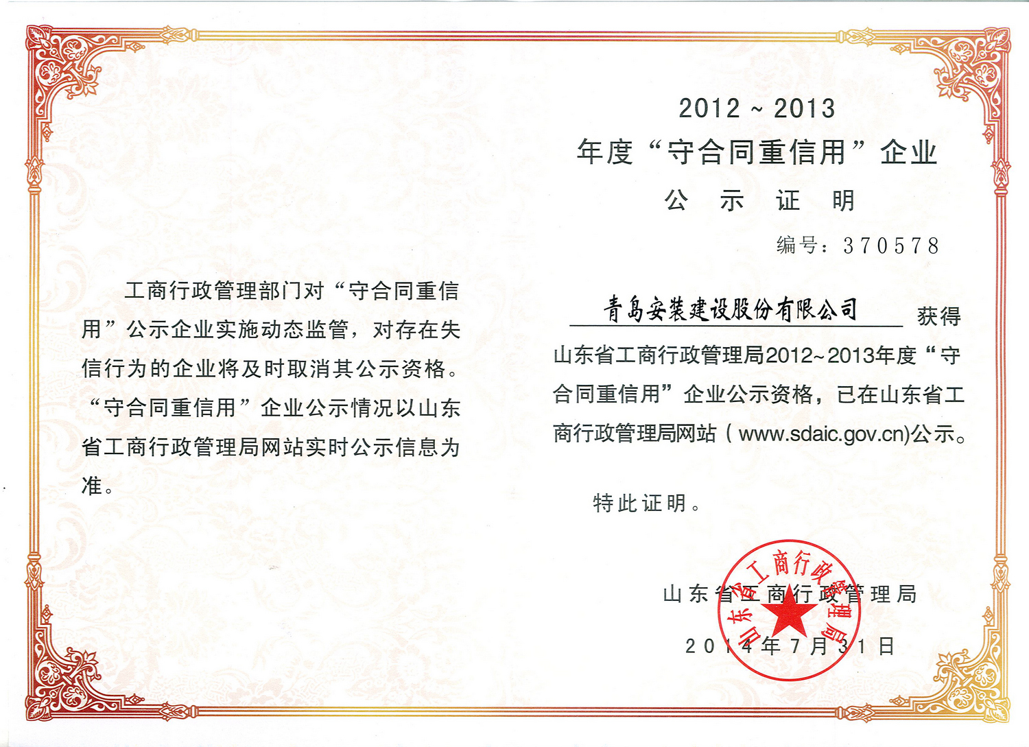 省級守合同重信用企業(yè)